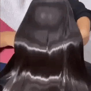 Cabello suave, alineado y con brillo visible.